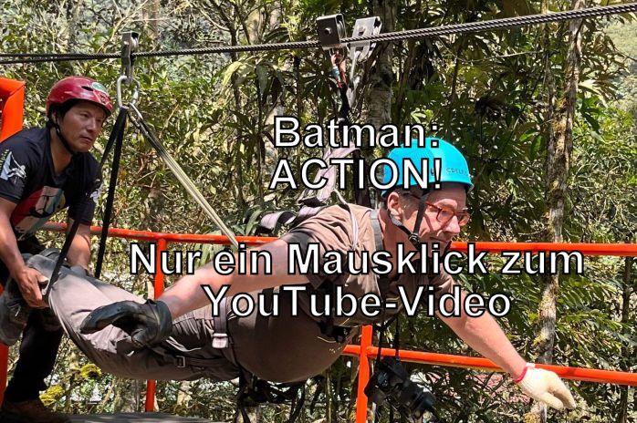 Wir werden eingewiesen, schlüpfen in die Sicherheitsausrüstung und schon geht es auf die erste der sechs Ziplines, die eine Länge zwischen 250 und 550 Metern haben. Beim Rauschen über dem Urwald und dem Tal ergeben sich immer wieder neue Ausblicke.