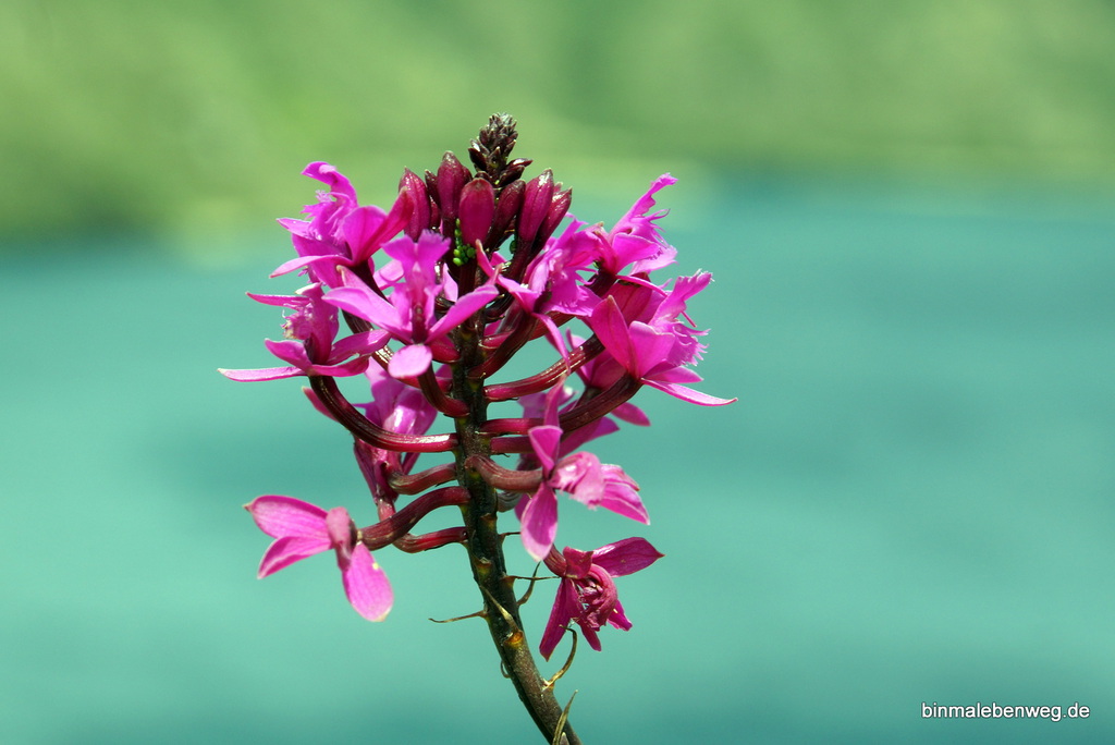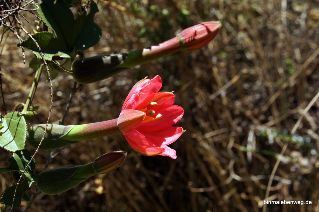 Wir sind weder geschwommen, noch haben wir 13jährigen Mädchen hinterhergeschaut. Statt dessen wandern wir die 15,15 km rund um die Caldera, wo sich in einer Höhe zwischen 3.104 und 3.500 Metern immer wieder neue Ausblicke eröffnen. Einfach toll hier oben. Teilweise geht es durch Büsche mit vielen Blüten, teilweise durch den Parano, die weiter oben gelegene Vegetationsstufe, das Pampagras.
