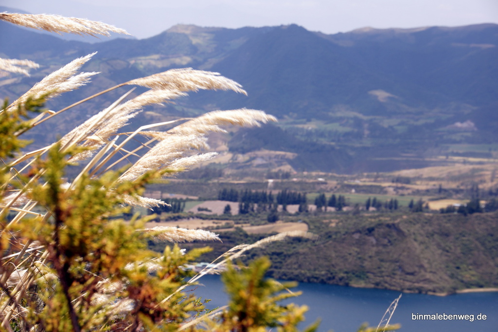 Wir brauchen auch Kraft. Schließlich wandern wir heute rund vier Stunden um die Laguna Cuicocha herum. Dieser große See befindet dich in der Caldera eines erloschenen Kraters. Nachdem die Caldera entstand, gab es noch mal einen kleinen Ausbruch, das Ergebnis sind zwei Inseln, die ein wenig die Form eines Meerschweinchens haben, weshalb diese im Volksmund auch Meerschweincheninseln genannt werden.