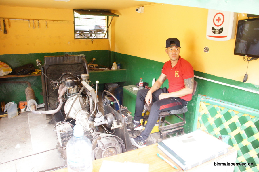 Der Motor ist aus lauter Ersatzteilen zusammengesetzt. Das Teil ist schnell. Sauschnell. Fünf bis sechs Passagiere haben Platz, vier sitzen, der Rest steht. Mitarbeiter des deutschen TÜV würden Schnappatmung bekommen.