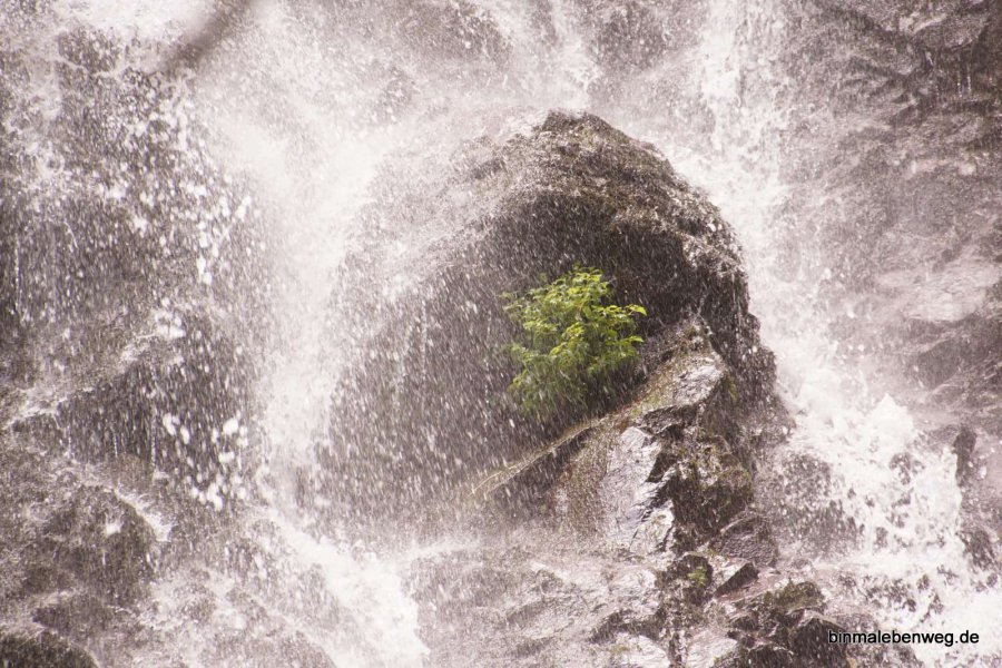 Oben erwartet uns ein steiler Anstieg zu einem schönen Wasserfall. Meine Füße fühlen sich dort sauwohl.