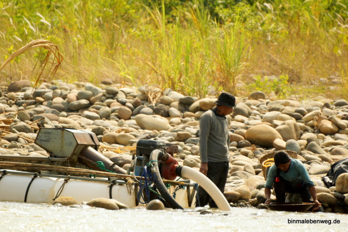 Unterwegs fahren wir immer wieder an Goldwäschern vorbei.