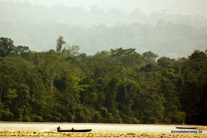 Es ist immer noch unglaublich heiß und schwül, meine Klamotten sind patschnass. Die Gummistiefel machen die Sache nicht wirklich besser. Erleichterung bringt der Fahrtwind, als uns das Langboot zurückbringt.