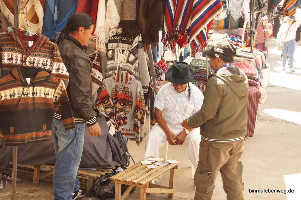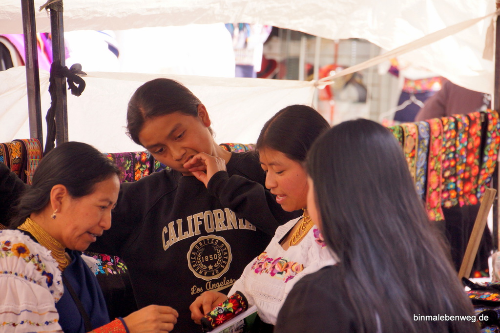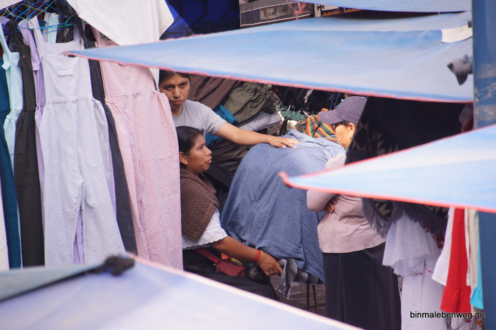 Es soll am Markt in Otavalo eine Art Mafia geben, die Stände sollen sich in der Hand einiger weniger Familien befinden. Ich merke hauptsächlich Unterschiede beim Abbau der Marktstände.
