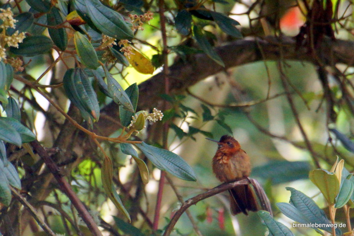 Als wir wieder im Pool sitzen – wir hatten gerade mal zu zweit geschaut, ob es weitere Becken gibt – grinst uns aus 30 Zentimetern Entfernung ein Kolibri an. Auch unter Folter schwören wir Stein und Bein, dass er uns seine Mittelkralle gezeigt hat. Schließlich hatten wir keinen Fotoapparat dabei.