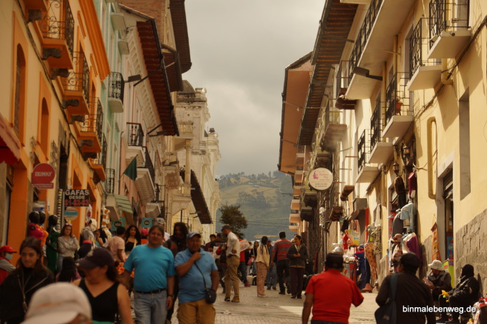 Auch wenn ich das Viertel hier draußen wirklich nicht mag, gut Essen gehen kann man hier zumindest. Aber auch hier wieder das vertraute Bild: Draußen viel los, die meisten Lokale sind aber weitgehend leer. Wie wir schon in Mindo festgestellt haben: Es gibt einfach ein Überangebot an (Touristen-)Restaurants.