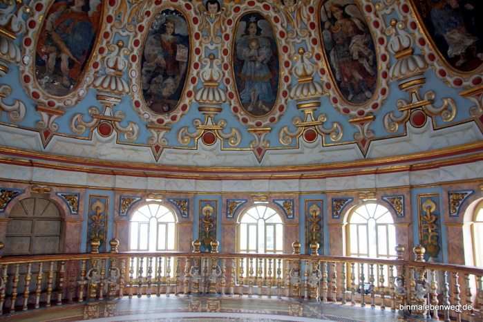 Toll, dass man hier eigentlich überall hin darf, etwa über schmale Stufen auf die Kuppel hinauf – das wäre in Deutschland aus Sicherheitsgründen nie zulässig. Apropos schmale Stufen: Hoch auf das Dach geht es über eine enge Wendeltreppe, über schmale Gänge, niedrige Durchgänge, ein paar Stolperfallen usw... Aber dieser Ausblick war alle Hindernisse wert.