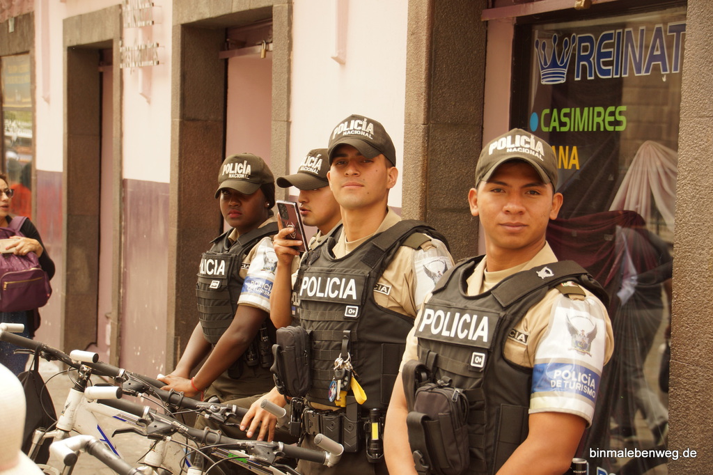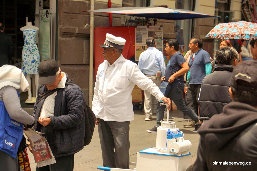 Anschließend werden einige von uns von Verkaufsständen in Beschlag genommen. Zu Dritt genießen wir derweil einen Cappuccino. Apropos Cappuccino: Im Gegensatz zu Peru gibt es in Ecuador überall erstklassigen Kaffee, sowohl in den Cafés, als auch beim Frühstück.