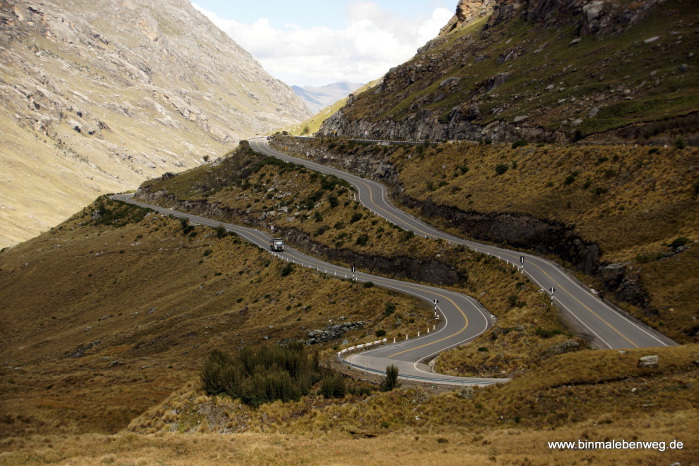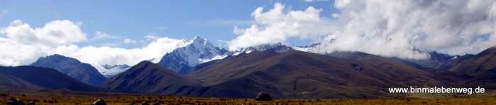 Heute geht es wieder hoch hinauf in die Berge. Die Fahrt ist abermals absolut spektakulär. Es geht auf 4516 Meter hoch, dort trennt uns der Kahuish-Tunnel vom nächsten Tal. Dahinter eine wunderschöne Hochebene mit einem größeren See. Von dort aus schlängelt sich ein kleiner Bach, der Rio Mosna, weiter runter ins Tal, der die paar Kilometer bis Chavín de Huantár enorm an Kraft gewinnt. Ein "paar" Kilometer weiter unten fließt der Strom in den Amazonas, der seinerseits wieder ein paar Kilometer später in den Atlantik mündet. Kaum zu glauben, was aus so einem harmlosen Bach mal wird.