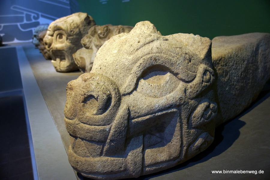 Zunächst einmal geht es in das interessante Museum, das einen guten Überblick gibt. Dort sind unter anderem die vielen steinernen Köpfe ausgestellt, die früher mit Zapfen in den Mauern befestigt waren. Dort saßen sie auch Jahrhunderte fest und stabil, bis 1993 das große Hochwasser kam. Dargestellt sind Menschen und Tiere mit von Halluzinogenen verzerrten Gesichtern.