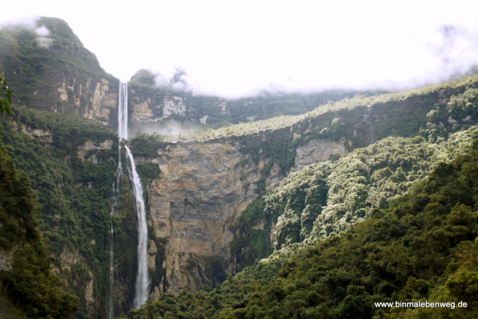 771 Meter hoch sind die Fälle. Liegen sie damit auf Rang 3 oder doch "nur" auf dem 17. Platz? Gar nicht so einfach. Wann ist ein Wasserfall eigentlich ein Wasserfall? Zählen Wasserfälle, die nur für einige Wochen nach der Schneeschmelze Wasser führen – viele davon liegen, bzw. besser gesagt fallen, in Norwegen – als „vollwertiger Wasserfall“? Wie geht man damit um, wenn ein Wasserfall aus mehreren Stufen besteht? Und wie, wenn gar aus mehreren Katarakten? Fazit: Eine Reihenfolge der höchsten Wasserfälle ist aus meiner Sicht extrem zufällig, der Gocta liegt demnach irgendwo zwischen Platz 3 und Platz 17. Aber drei Sachen sind glasklar (wie das Wasser des Wasserfalls): Die Gocta-Fälle sind verdammt hoch. Sie liegen spektakulär. Und es ist schweißtreibend, hinzukommen.
