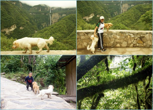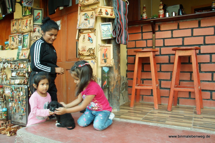 Uns begleiten aber auch zwei niedliche Hunde, der eine davon hört auf den Namen „Machina“. Fotos von den beiden übereinander liegenden Wasserfällen haben die anderen auch. Ich habe aber Fotos von einem oder zwei Hunden mit Wasserfall, mit Peter, mit Sheila, mit spielenden Kindern, mit gejagtem Huhn...