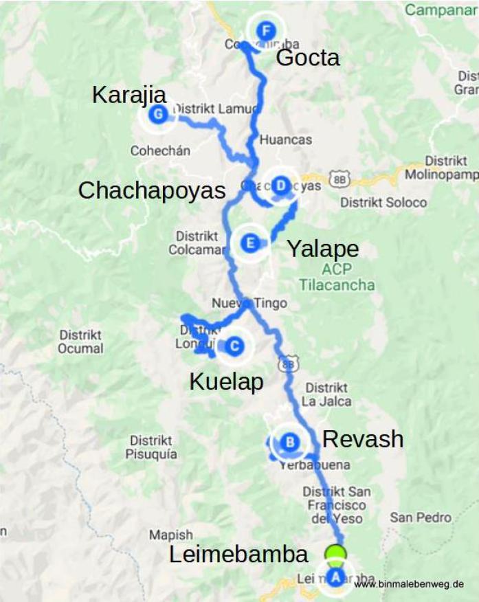 Seine Herausforderung: Er muss sehr intensiv planen, wie er von A nach B kommt. Von einer Stadt zur anderen geht das noch. Aber hoch in die Dörfer, um dann nach Yalape, Revash, Karajia oder hier zu den Gocta-Fällen zu kommen, wird der Weg eine echte Herausforderung. Einfach in den Bus steigen, gibt es hier nicht.