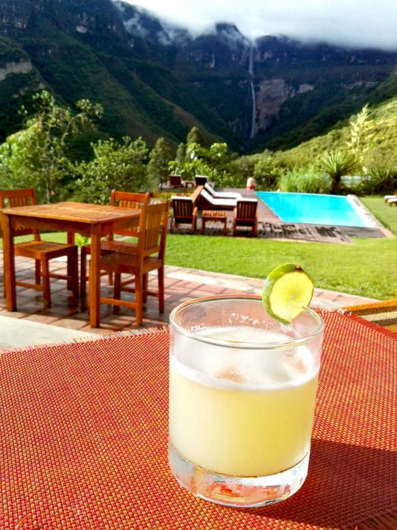 Die anderen sieben reiten entweder zu den Fällen oder gehen nur ein kurzes Stück. Ikarus, unser Reiseveranstalter, hat nach Intervention unserer Reiseleiterin Carlotta eingesehen, dass er uns nach dem „Kuelap-Desaster“ etwa Gutes tun muss und bietet den Trip zu einem der höchsten Wasserfälle der Erde kostenlos an (sonst über 50 Euro extra, ist der einzige optional angebotene Punkt unserer Reise) incl. Essen und anschließendem Pisco Sour in der Gocta Andes Lodge. Eine gute Reiseleiterin weiß halt, worauf ihre Schäfchen Wert legen! Hicks!
