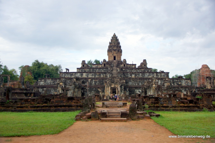 Die oberste Stufe ist 14 Meter hoch. Auf der Spitze befindet sich ein Turm, der im 12. Jahrhundert im Stil des Angkor Wat ergänzt wurde.