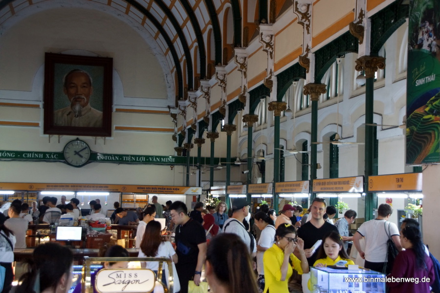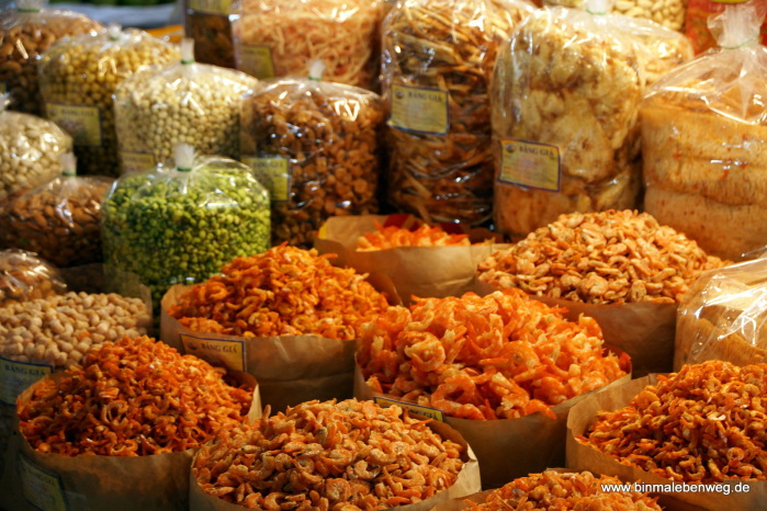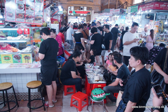Vormittags dreimal am Wiedervereinigungspalast vorbeigefahren. Bevor wir diesen aber nicht besuchen, geht es erst einmal zum Ben Tanh-Markt, der in einem Riesengebäude untergebracht ist. Wer