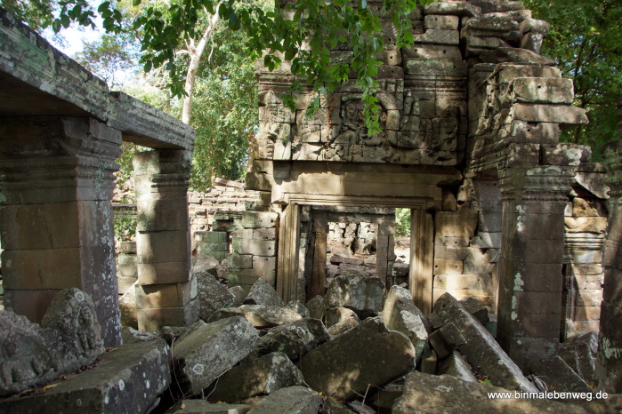 Der größte Bauherr von Angkor, Jayarvarman VII, ließ hier einen prächtigen Tempel erbauen. Den haben wir praktisch für uns alleine. Der Tempel wurde vom Tourismus bis dato übersehen. Das könnte natürlich auch damit zusammenhängen, dass er abseits der Tourismusströme liegt.