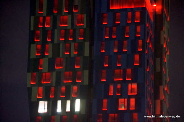 Und irgendjemand bezahlt auch noch das Geld für die stetig wechselnde Beleuchtung des Gebäudes...
